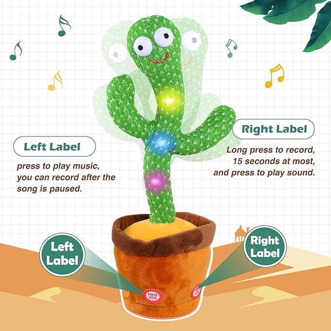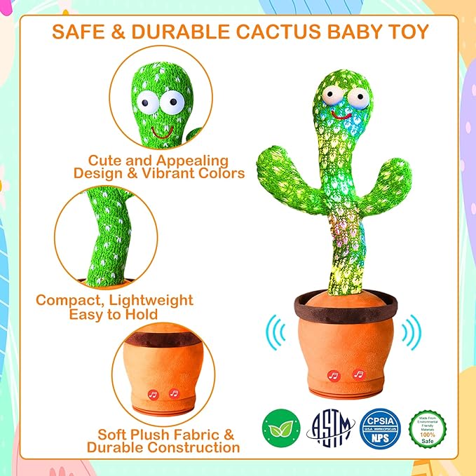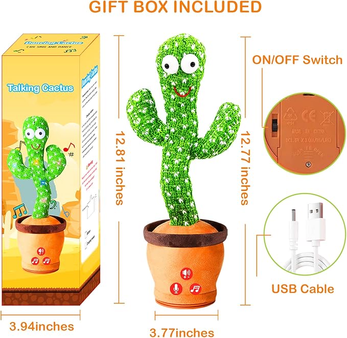 Interactive Fun: The cactus dances to various songs and repeats what you say in a funny, high-pitched voice, ensuring endless entertainment.